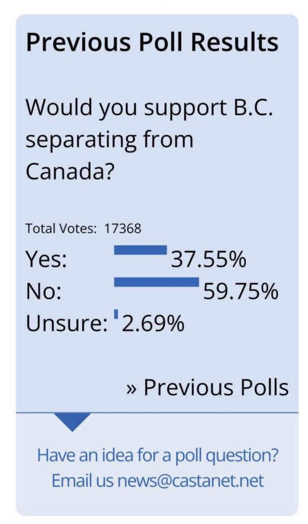 Talk of BC separation has long been suppressed but events cracked the discussion open with Castanet running an online poll, which they shut down early when it was trending sideways.